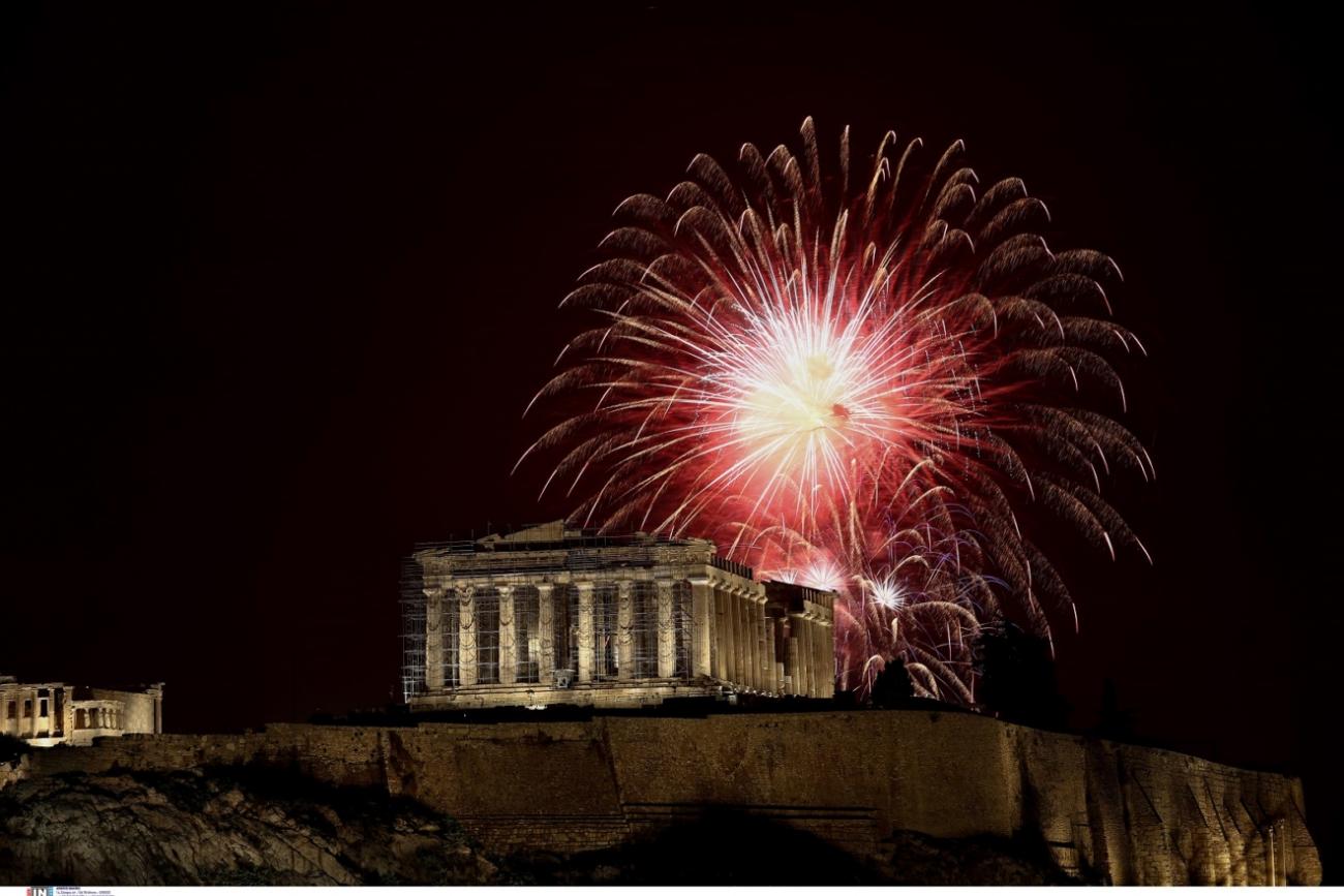 Πολυάριθμα, εντυπωσιακά πυροτεχνήματα φώτισαν τον αθηναϊκό ουρανό πάνω από την Ακρόπολη, τη Βουλή και το Σύνταγμα, δημιουργώντας ένα πραγματικά φαντασμαγορικό θέαμα.