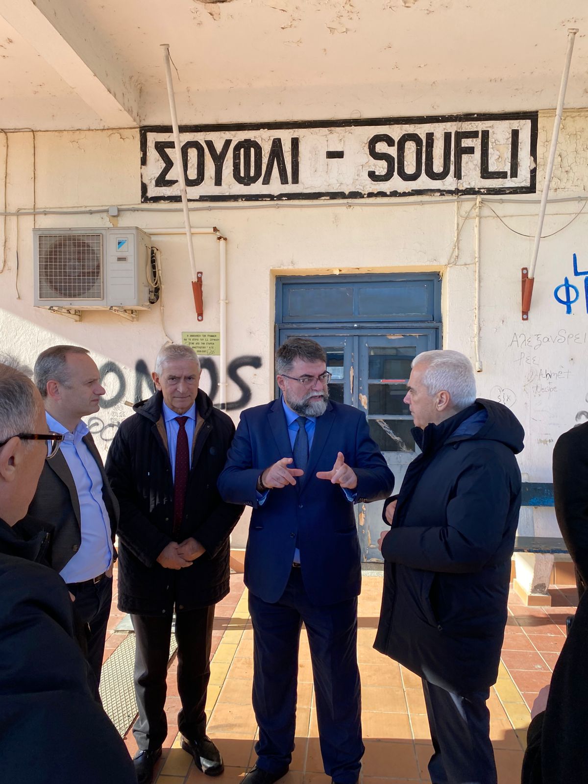 Η επίσκεψη ξεκίνησε από τον Σιδηροδρομικό Σταθμό της Αλεξανδρούπολης, όπου ο Υφυπουργός συναντήθηκε με τους Βουλευτές Έβρου, Χρήστο Δερμεντζόπουλο, Σταύρο Κελέτση και Αναστάσιο Δημοσχάκη, τον Περιφερειάρχη Ανατολικής Μακεδονίας και Θράκης, Χριστόδουλο Τοψίδη, τον Αντιπεριφερειάρχη ΠΕ Έβρου, Ευάγγελο Πουλιλιό, τον Δήμαρχο Αλεξανδρούπολης, Γιάννη Ζαμπούκη, τον Δήμαρχο Διδυμότειχου, Ρωμύλο Χατζηγιάννογλου, καθώς και τον Αερολιμενάρχη του αεροδρομίου «Δημόκριτος» της Αλεξανδρούπολης, Στέλιο Ζαντανίδη.