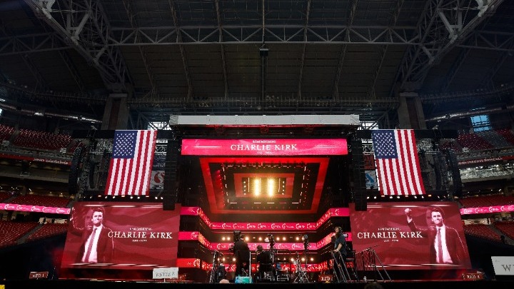 Σύσσωμη η ηγεσία των τραμπιστών, από τον πρόεδρο Ντόναλντ Τραμπ και τον αντιπρόεδρό του Τζέι Ντι Βανς, έχει συγκεντρωθεί σήμερα για την νεκρώσιμη τελετή και φόρο τιμής στον δολοφονημένο υπερσυντηρητικό influencer Τσάρλι Κερκ, σε ένα στάδιο με περισσότερες από 60.000 θέσεις στην Αριζόνα.