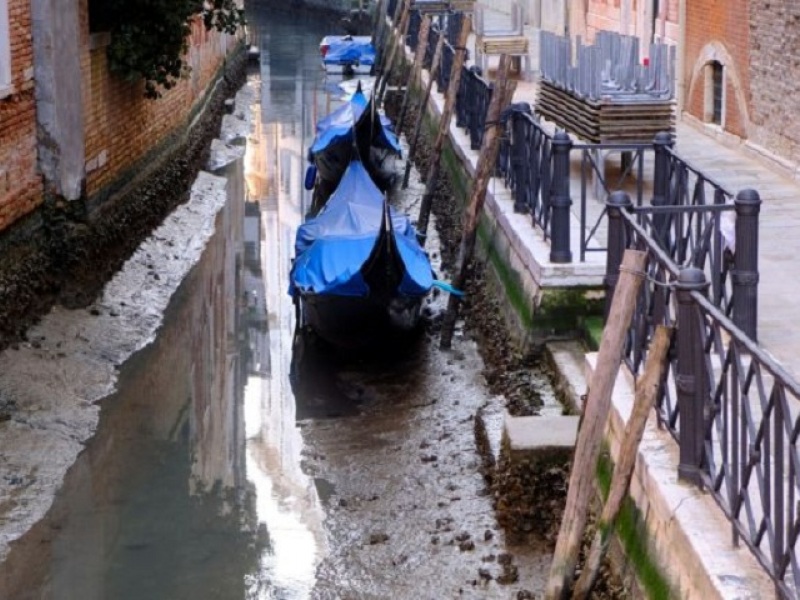 Μπροστά σ’ ένα απόκοσμο θέαμα βρέθηκαν οι κάτοικοι της Βενετίας με τα φημισμένα κανάλια να έχουν σχεδόν στερέψει λόγω μιας ασυνήθιστης άμπωτης και τις παραδοσιακές γόνδολες και άλλα πλοιάρια να έχουν αράξει στο βυθό.