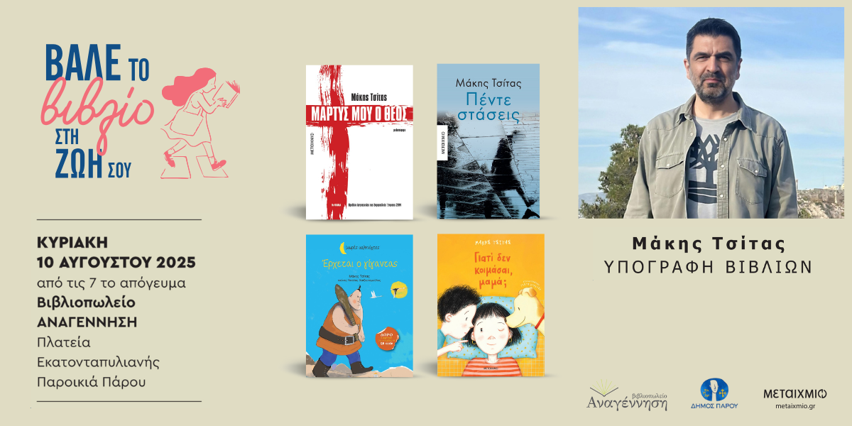 να συναντήσουν τον συγγραφέα Μάκη Τσίτα, την Κυριακή 10 Αυγούστου 2025, στις