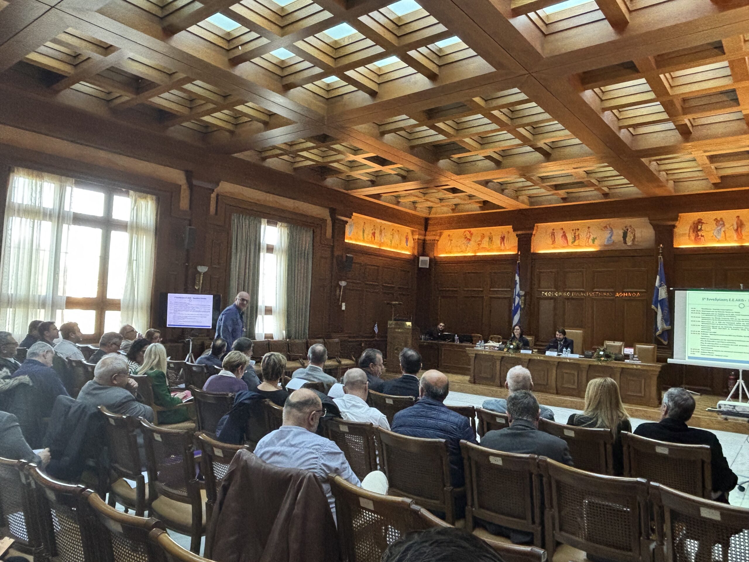Στη συνεδρίαση έγιναν παρουσιάσεις από στελέχη της Διεύθυνσης Έρευνας, Καινοτομίας και Εκπαίδευσης, της Διαχειριστικής Αρχής ΣΣ ΚΑΠ και της Ειδικής Υπηρεσίας Εφαρμογής ΠΑΑ, σχετικά με τη φιλοσοφία, τις βασικές αρχές και τις παρεμβάσεις που συνθέτουν το σύστημα AKIS. Παράλληλα, συζητήθηκαν θέματα και ανταλλάχθηκαν απόψεις σχετικά με την υφιστάμενη κατάσταση του ΑΚΙS στην Ελλάδα, ενώ κατατέθηκαν και προτάσεις για τη βελτίωση της ροής μεταφοράς γνώσης, την ενδυνάμωση των συνεργειών μεταξύ των εμπλεκόμενων φορέων και το χρονοδιάγραμμα υλοποίησης των σχεδιαζόμενων δράσεων και ενεργειών.