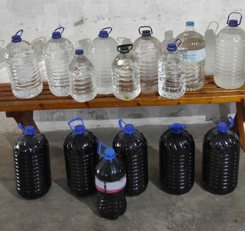 συνολικά 75 λίτρα αλκοολούχο απόσταγμα (τσίπουρο) και 55 λίτρα χύμα κρασί,