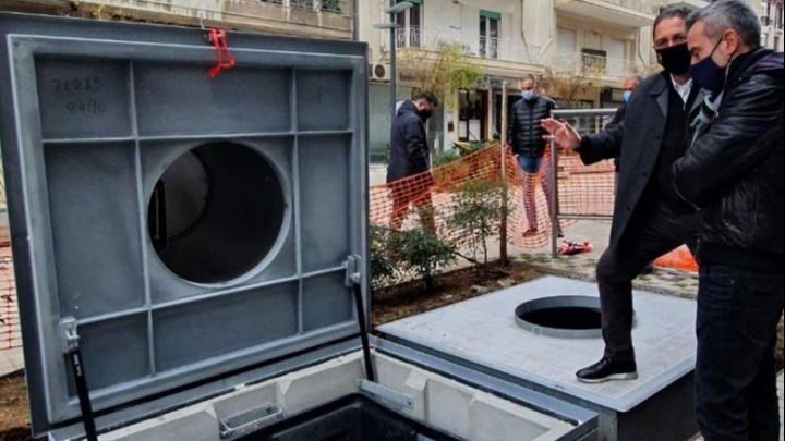 Τοποθετήθηκαν το πρωί στον άξονα της Δημητρίου Γούναρη οι πρώτοι από τους υπόγειους κάδους που έχει προγραμματιστεί να εγκατασταθούν στο ιστορικό κέντρο της Θεσσαλονίκης.
