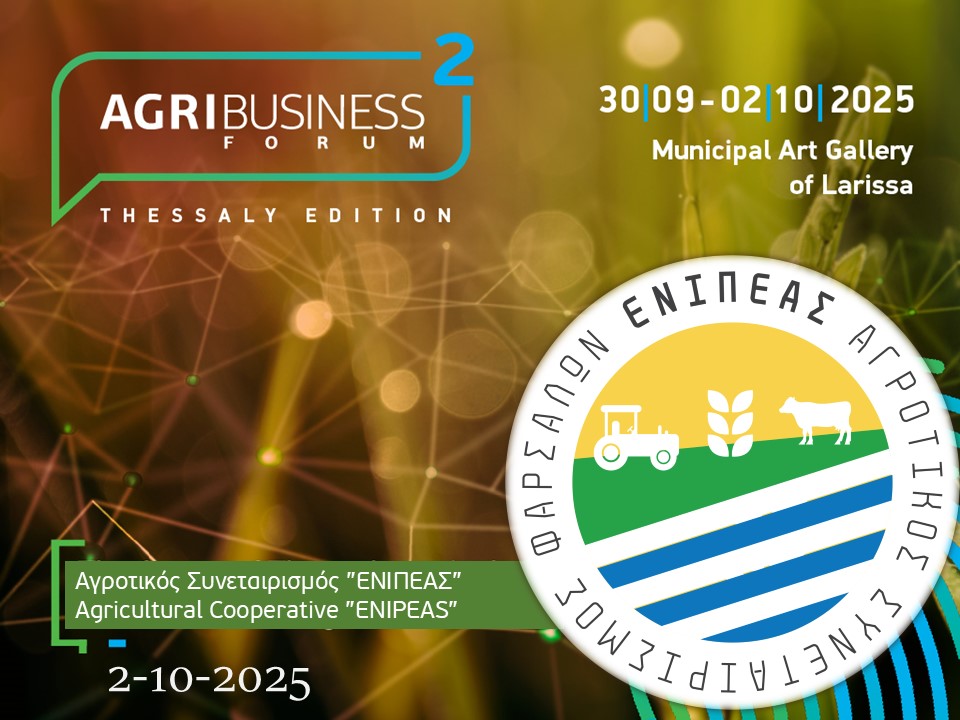 Το τριήμερο 30 Σεπ, 1 Οκτ & 2 Οκτ 2025, στην Λάρισα (Δημοτική Πινακοθήκη) θα αναπτυχθεί το 2ο AgriBusiness Forum Θεσσαλίας με θέμα: «Το μέλλον του αγροδιατροφικού τομέα της Θεσσαλίας στην ψηφιακή & πράσινη εποχή».
